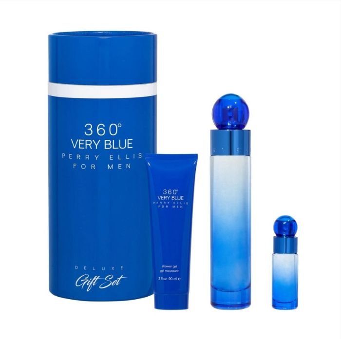 A fresh trio presenting the cool, laid-back vibe of 360 Very Blue, perfect for relaxed yet confident men.